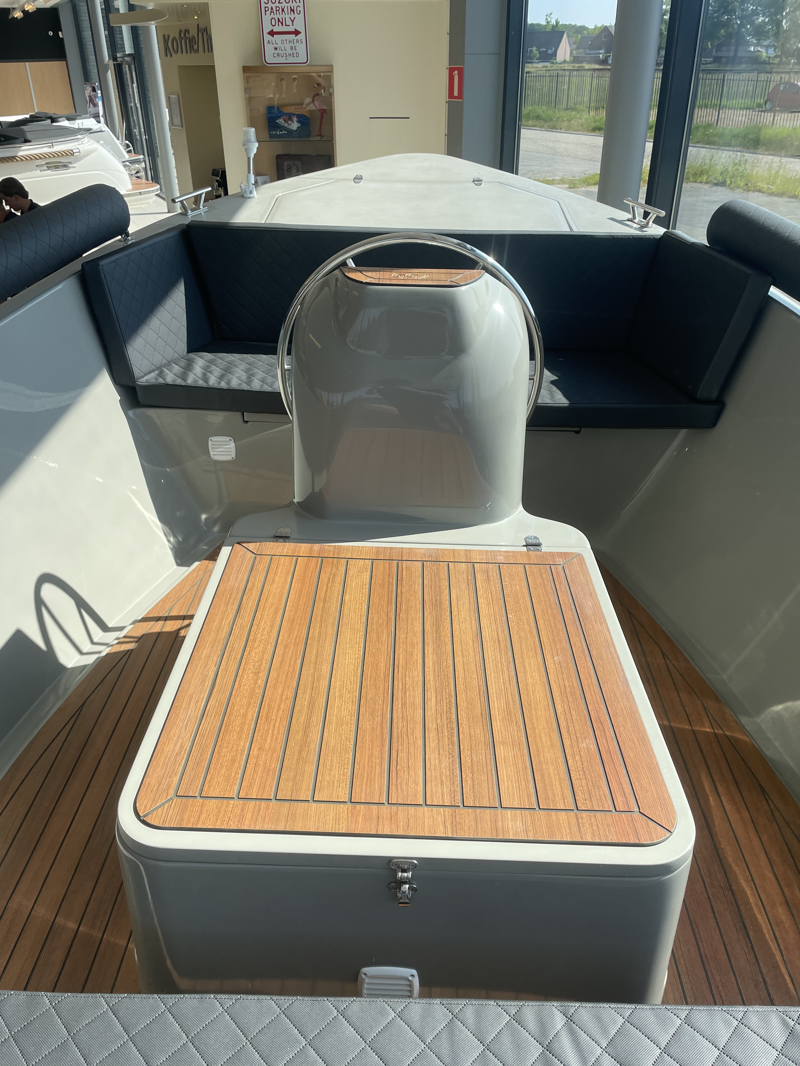 Schitterende STOUT 750 met een Suzuki DF 30 uit 2023 in kleur steengrijs-steengrijs