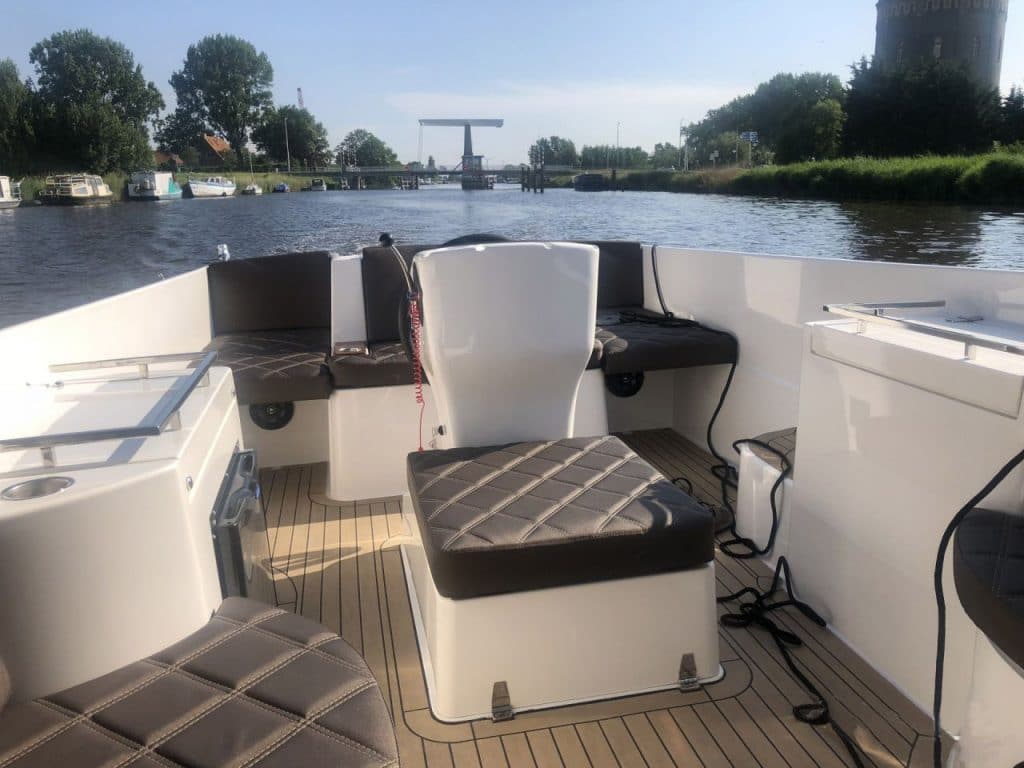 Voorin de TendR 23 is een ruime comfortabele rondzit die getransformeerd kan worden tot een groot zonnedek. De opstapjes aan zowel bakboord als stuurboord vergemakkelijken het in- en uitstappen.